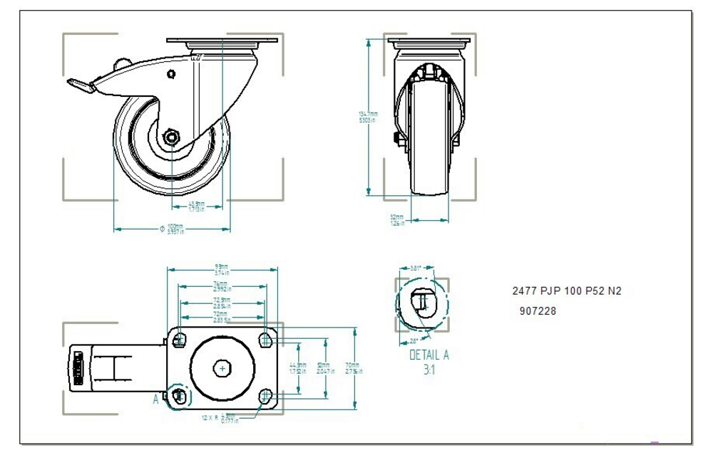 Agila 토탈락 장치가 있는 회전식 캐스터는 직사각형 플레이트, 미국 볼트홀 간격의 피팅을 채택하고 있습니다. 하우징은 강판, 중 소재로 제작되었으며 볼 레이스 2회 스위블 베어링을 적용하여 우수한 회전성을 제공합니다. 휠은 폴리프로필렌 바디에 열가소성 고무 트레드를 결합하고 정밀 볼 베어링을 장착하여 부드러운 주행을 보장하며, 휠 직경은 100mm입니다. 전체 높이는 135mm로 설계되었습니다. 하중 용량은 3km/h 속도에서 동적 하중 100kg, 정적 하중 200kg을 지원합니다. 간호용 침대, 케이터링 카트 및 식사 배달 시스템, 병원, 양로원 및 요양원, 전문 청소 카트, 매장 비품 및 진열대 등의 용도에 적합합니다.