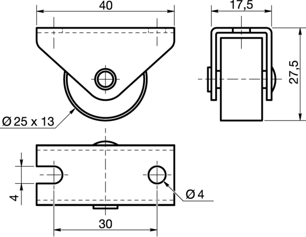 Compacta 고정 캐스터는 직사각형 플레이트 피팅을 채용하여 안정적인 장착을 제공합니다. 하우징은 강판, 중 소재로 제작되어 우수한 내구성과 강도를 보장하며, 산업용 환경에서의 장기간 사용에 적합합니다. 휠은 폴리아미드 본체와 휠 차체와 동일한 트레드 소재로 구성되어 있으며, 스페이서 튜브가 장착된 플레인 베어링을 적용하여 원활한 회전 성능을 제공합니다. 휠 직경은 25mm이고 전체 높이는 28mm의 컴팩트한 설계로 공간 제약이 있는 응용 분야에 최적화되어 있습니다. 동적 하중 용량은 3km/h 속도에서 25kg이며, 정적 하중 용량은 50kg으로 다양한 산업용 장비 및 기기에 안정적인 지지력을 제공합니다.