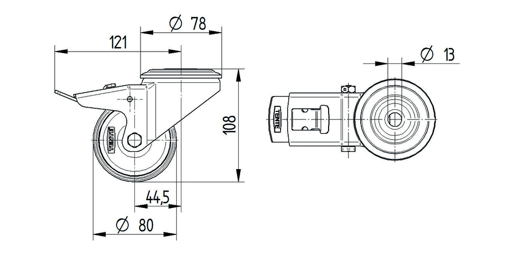Zwenkwiel met dubbele rem 80 mm