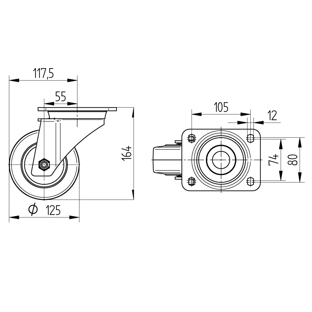 Kółko obrotowe 125 mm