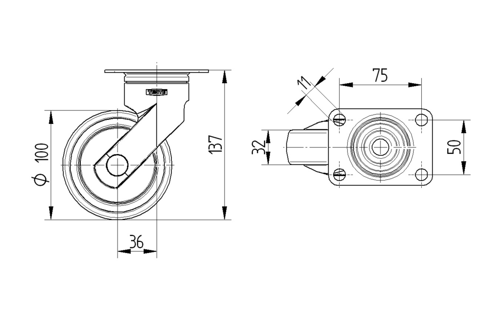 O rodízio giratório Levina é equipado com uma placa de fixação retangular e apresenta uma estrutura robusta em poliamida com rolamento giratório de duas filas de esferas para movimento suave e durável. A roda possui corpo em poliamida eletro-condutivo e banda de rodagem em poliuretano injetado eletro-condutivo, montada sobre rolamento de esferas de precisão, com diâmetro de 100 mm. O conjunto apresenta altura total de 141 mm e oferece capacidade de carga dinâmica de 100 kg a velocidade de 3 km/h e capacidade de carga estática de 200 kg. Este rodízio é especialmente adequado para aplicações em equipamentos médicos como carrinhos de anestesia, braços em C, tomógrafos, ressonâncias magnéticas, camas de cuidados, carrinhos de diálise e medicação, bem como em ambientes comerciais incluindo carrinhos de catering, mobiliário de loja, bancadas de trabalho e armários de ferramentas.
