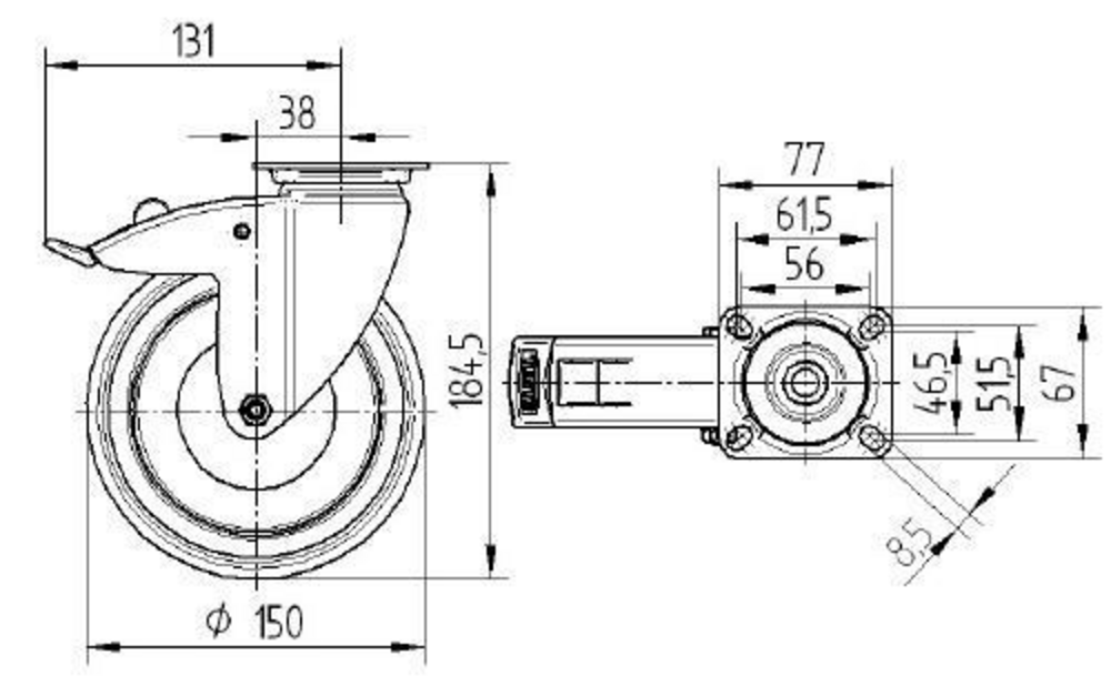 O rodízio giratório com travão total Agila é equipado com uma placa de fixação retangular e apresenta uma estrutura robusta em folha de aço média com rolamento giratório de duas filas de esferas para máxima durabilidade. A roda possui corpo em poliamida e banda de rodagem em poliuretano injetado, montada sobre rolamento de esferas de precisão, com diâmetro de 150 mm que garante excelente mobilidade. Com altura total de 185 mm, este rodízio oferece capacidade de carga dinâmica de 100 kg a velocidade de 3 km/h e capacidade estática de 200 kg. É especialmente adequado para aplicações em camas de cuidados, carrinhos de catering e sistemas de distribuição de refeições, hospitais, lares de idosos e lares de terceira idade, carrinhos de limpeza profissional, bem como mobiliário e expositores de loja.