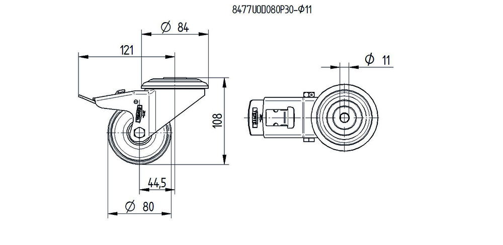Поворотное колесная опора с общий тормоз Alpha stainless представляет собой высококачественное решение с отверстие под болт для надежного крепления. Корпус изготовлен из нержавеющая сталь, тяжелая с поворотным механизмом на две гонки с мячом, обеспечивающим плавное вращение. Колесо диаметром 80 мм выполнено из полиамид с протектором идентично корпусу колесо, оснащено роликовый (игольчатый) подшипник нержавеющая сталь для долговечной работы. Общая высота конструкции составляет 108 мм. Динамическая грузоподъемность достигает 150 кг при скорости до 4 км/ч, статическая нагрузка - 300 кг. Изделие применяется в тележки для кейтеринга и системы доставки питания, строительство контейнеров, электронные системы, технологии чистых помещений, пожаротехническое оборудование, противопожарная защита, машиностроение и транспортное оборудование.