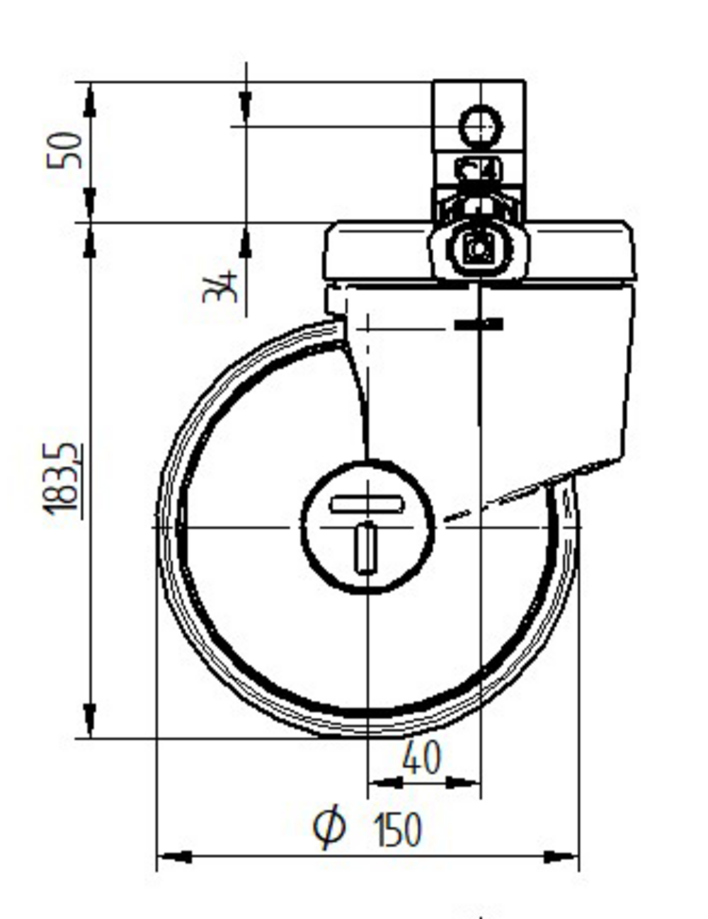 Поворотное Колесная опора с центральным, полным или Тормоз направления 150 mm