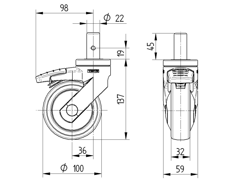 Levina带方向锁的旋转脚轮采用实心螺杆圆形配件设计,确保稳固的安装连接。脚轮外壳由高强度聚酯胺材料制成,配备两个钢珠滚道的旋转轴承系统,提供平稳的360度旋转性能和可靠的方向锁定功能。车轮本体采用聚丙烯材料构造,表面覆盖热塑性橡胶胎面,内置精密滚珠轴承,车轮直径为100毫米,整体高度为137毫米。该脚轮具有优异的承载能力,动态载荷为100公斤(行驶速度3公里/小时),静态载荷可达200公斤。产品广泛应用于医疗设备如麻醉车、C型臂、CT扫描仪、核磁共振、X光设备、护理床、透析车、呼吸机,以及餐饮手推车、带轮计算机、专业清洁车、购物车、商店家具展示架、超声设备、工作台和工具柜等多种场合,满足医院、养老院、护理院等专业环境的使用需求。