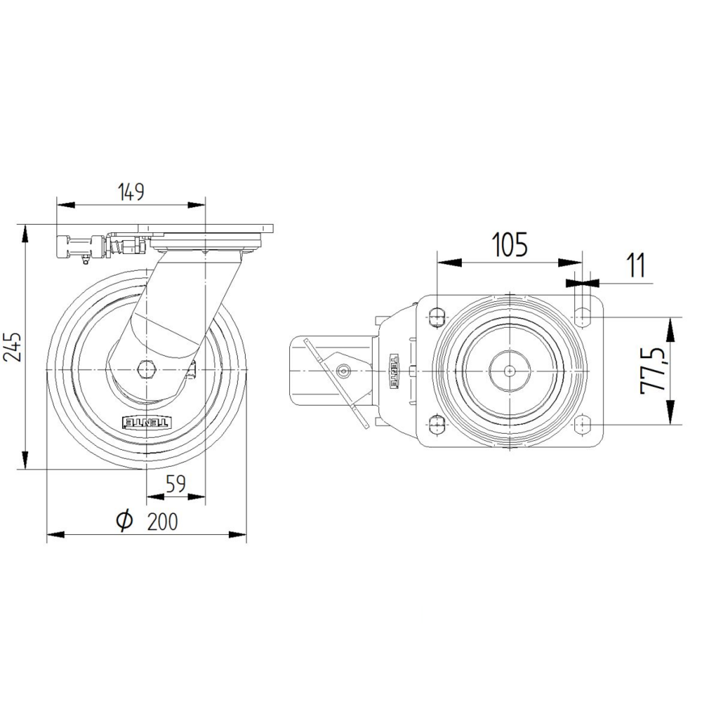 Kappa带方向锁的旋转脚轮采用矩形板安装方式,外壳采用铸铁或锻铁重型材质制造,配备两个球座圈,加强的型或不锈钢型旋转轴承系统确保卓越的转向性能。脚轮轮体采用铸铁材质,胎面为聚氨酯铸造材料,内置精密滚珠轴承保证平稳运行。轮径为200毫米,脚轮总高度为245毫米。动载荷能力在4公里/小时速度下可承载1200公斤,在6公里/小时速度下可承载1000公斤,静载荷能力高达2000公斤。该产品广泛应用于航空航天工业机场设备、AMR系统、汽车OEM、陶瓷和玻璃制造商、生产和平台手推车以及重型AGV系统等工业领域,为重载应用提供可靠的移动解决方案。