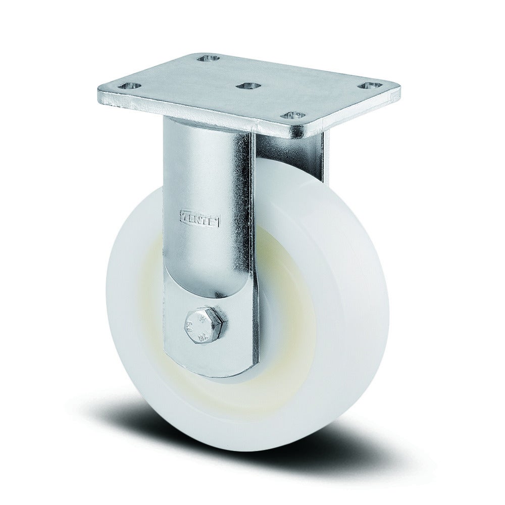 Kappa固定脚轮采用矩形板安装方式,为重载应用提供可靠的移动解决方案。脚轮外壳采用铸铁或锻铁材质,具有重型结构特点,确保在高负荷环境下的耐用性和稳定性。车轮本体采用聚酯胺材料制造,胎面材料与轮子体相同,保证了整体的一致性和性能表现,配备精密滚珠轴承系统以实现平稳运转。车轮直径为150毫米,脚轮总高度为200毫米,紧凑的设计便于集成到各种设备中。该脚轮具有出色的承载能力,静态负荷可达1600公斤,动态负荷在4公里/小时速度下为960公斤,在6公里/小时速度下为800公斤。产品广泛应用于航空航天工业机场设备、AMR系统、汽车OEM、陶瓷和玻璃制造商、生产和平台手推车以及重型AGV系统等多个专业领域。
