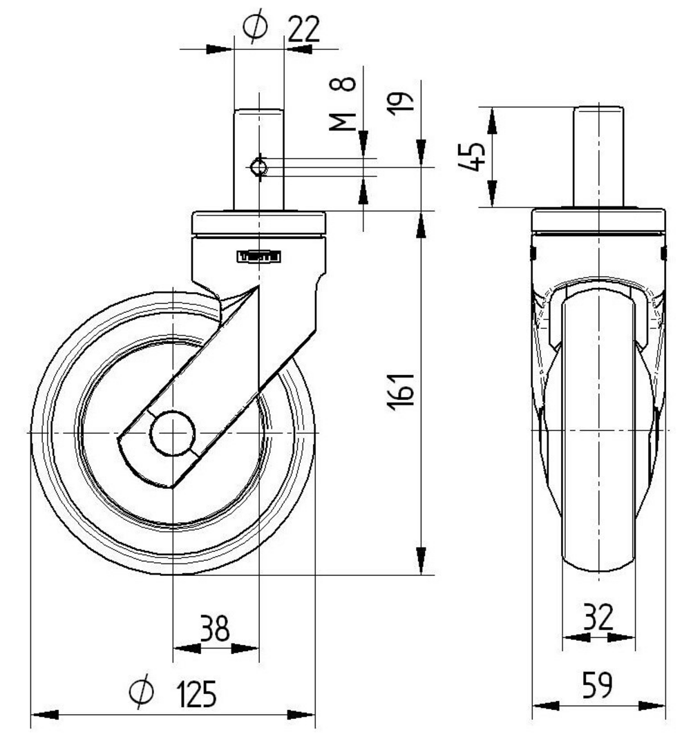 Levina万向脚轮采用实心闸杆圆形连接方式,确保稳固的安装连接。脚轮外壳由高强度聚酯胺材料制成,配备两个钢珠滚道的旋转轴承系统,提供平滑灵活的360度转向性能。车轮主体采用聚丙烯材料构造,表面覆盖热塑性橡胶胎面,具有优异的耐磨性和减震效果,内置精密滚珠轴承确保车轮转动的顺畅性和耐久性。车轮直径为125毫米,脚轮总高度为161毫米,结构紧凑适用于各种设备安装。该脚轮动载荷能力为100公斤(运行速度3公里/小时),静载荷能力达200公斤,能够满足重载应用需求。产品广泛应用于医疗设备如麻醉车、护理床、透析车、呼吸机等,以及商业设备如购物车、餐饮手推车、工作台、工具柜等多种场合,为各类移动设备提供可靠的移动解决方案。