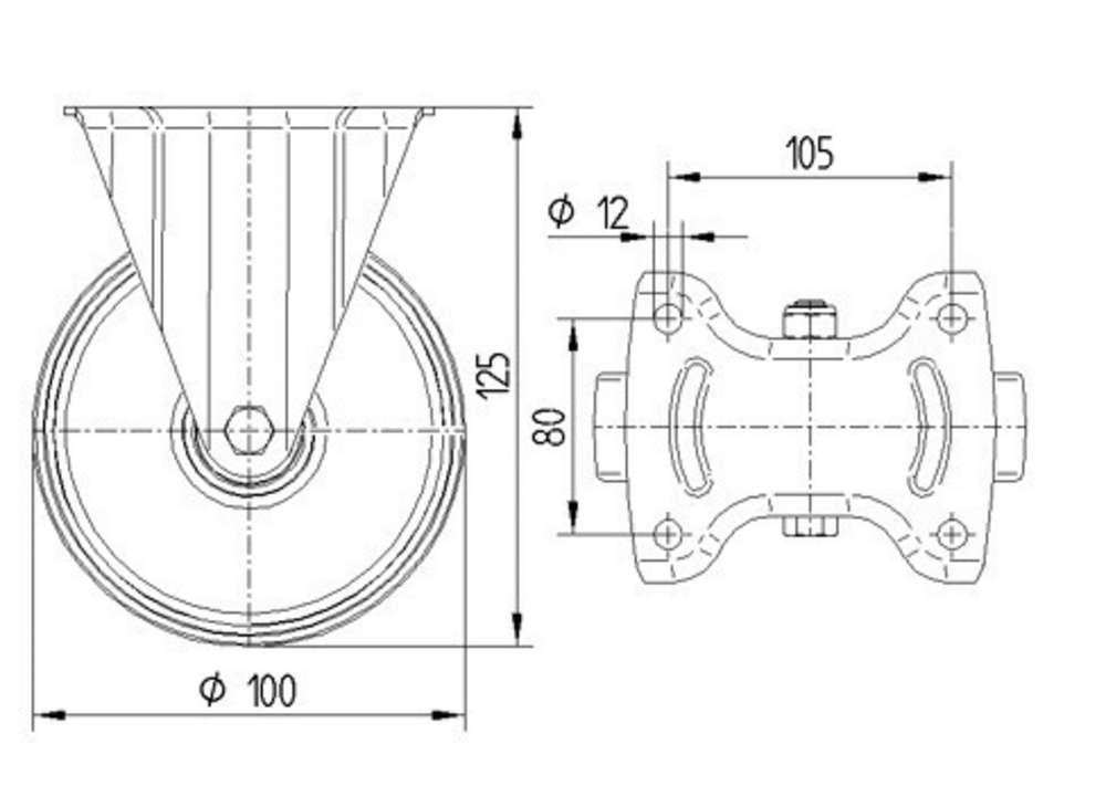 Alpha固定脚轮采用矩形板安装方式,配备钢板重型外壳结构,确保在工业环境中的耐用性和稳定性。脚轮轮体采用铝制材料制造,表面覆盖黑色硫化弹性轮胎,提供优异的减震性能和地面保护,内置精密滚珠轴承系统保证平稳运转和较长使用寿命。轮子直径为100毫米,整体高度为125毫米,结构紧凑适合各种安装空间要求。该脚轮动载荷能力为200公斤(在4公里每小时速度下),静载荷能力达400公斤,能够满足重载应用需求。产品广泛应用于汽车OEM、餐饮手推车和送餐系统、集装箱建造、电子系统洁净室技术、消防技术防火保护、机械制造、邮政物流系统、生产和平台手推车、滚笼、工具柜、运输设备、废物处理设备以及工作台等多个工业领域,为各种移动设备提供可靠的支撑解决方案。