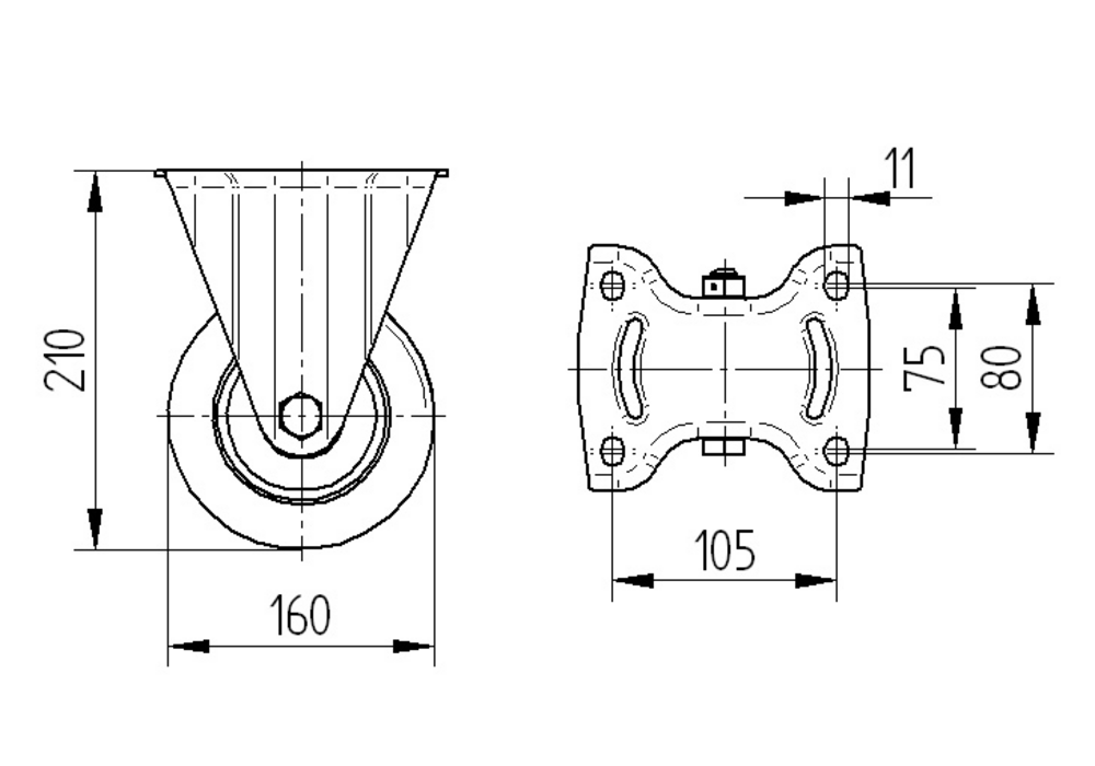 Delta固定脚轮采用矩形板安装方式,配备重型钢板外壳结构,确保卓越的承载性能和耐久性。脚轮轮体采用铝制材料制造,胎面为铸造聚氨酯材质,提供优异的耐磨性和减震效果,内置精密滚珠轴承系统保证平稳运行。轮径为160毫米,整体高度为210毫米,结构紧凑适用于各种工业环境。动载荷能力在4公里/小时速度下可达550公斤,在6公里/小时速度下为440公斤,静载荷承载能力高达1100公斤,满足重载应用需求。该脚轮广泛应用于航空航天工业机场设备、汽车OEM制造、邮政物流系统、生产和平台手推车以及各类运输设备中,为工业移动解决方案提供可靠支撑。