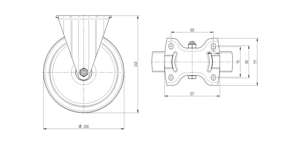 Zeta stainless固定脚轮采用矩形板安装方式,配备不锈钢重型外壳结构,确保在恶劣环境下的耐腐蚀性和持久耐用性。车轮主体采用聚氨酯材料制造,表面覆盖弹性轮胎、无痕、硫化胎面材料,有效保护地面并提供优异的滚动性能。轴承系统采用精密滚珠轴承,密封的设计有效防止污染物侵入,延长使用寿命。车轮直径为200毫米,脚轮总高度为240毫米,结构紧凑适用于多种工业应用场景。动态承载能力在4公里每小时速度下可达400公斤,在6公里每小时速度下可达320公斤,静态承载能力高达800公斤,能够满足重载设备的移动需求,为工业运输提供可靠的承载解决方案。