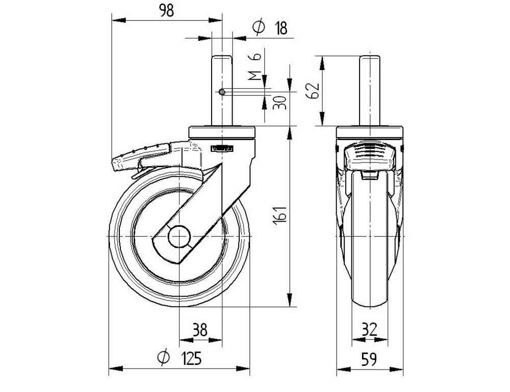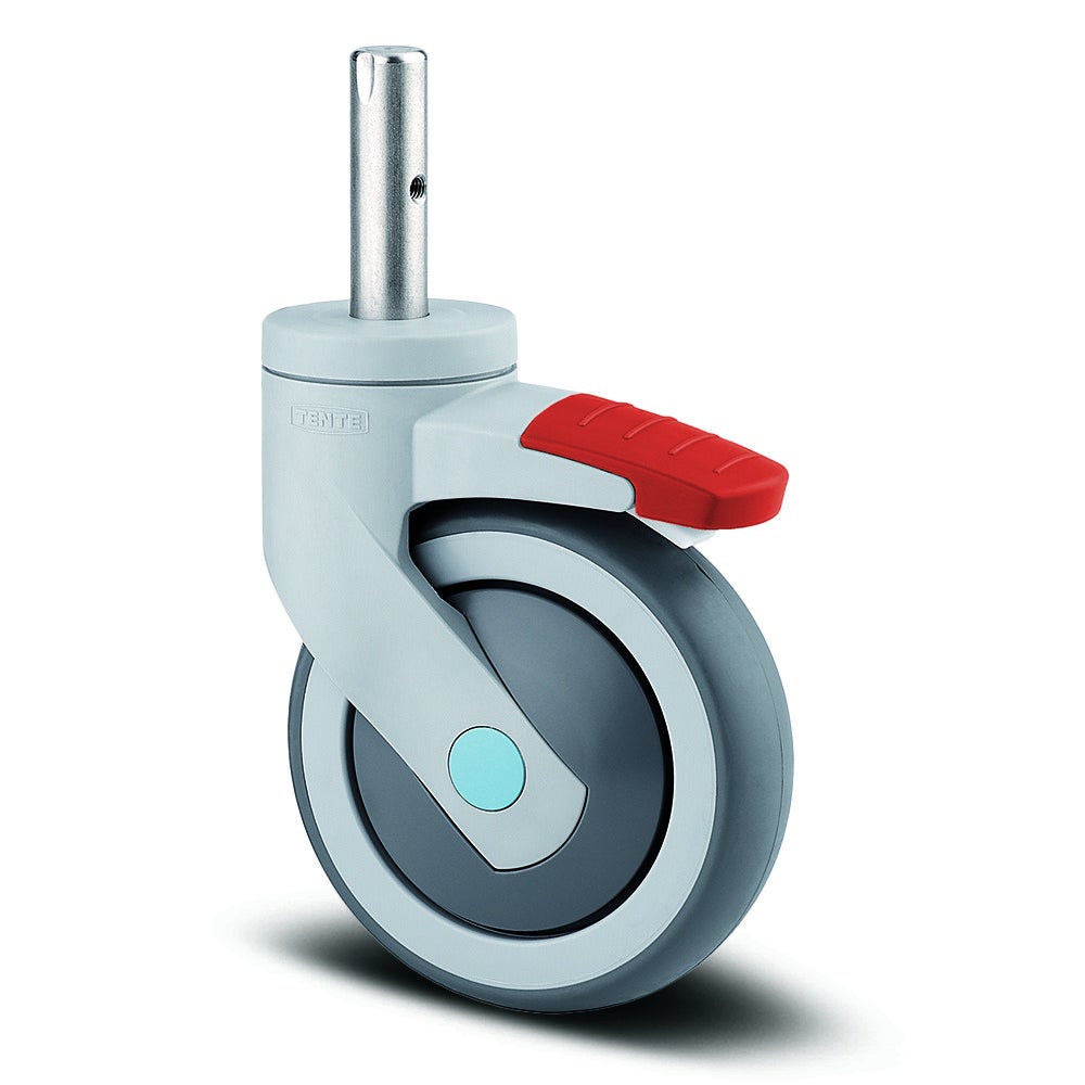 Levina stainless带全锁的旋转脚轮采用实心螺杆圆形连接方式,确保稳固安装。脚轮外壳由聚酯胺材料制成,配备两个球座圈,加强的型或不锈钢型旋转轴承,提供卓越的转向性能和耐久性。车轮本体采用聚酯胺导电材料,胎面为聚氨酯注塑导电材料,具备优异的防静电特性,内置精密滚珠轴承不锈钢结构确保平稳运行。车轮直径为125毫米,脚轮总高度为161毫米,结构紧凑适用性强。该脚轮动态承载能力为100公斤(运行速度3公里/小时),静态承载能力达200公斤,能够满足各种重载应用需求。产品广泛应用于麻醉车、C形臂CT扫描仪核磁共振X光设备、餐饮手推车和送餐系统、带轮计算机、透析车、医院药品车、养老院和护理院护理车、超声设备、呼吸机以及专业清洁车等医疗和专业设备领域。