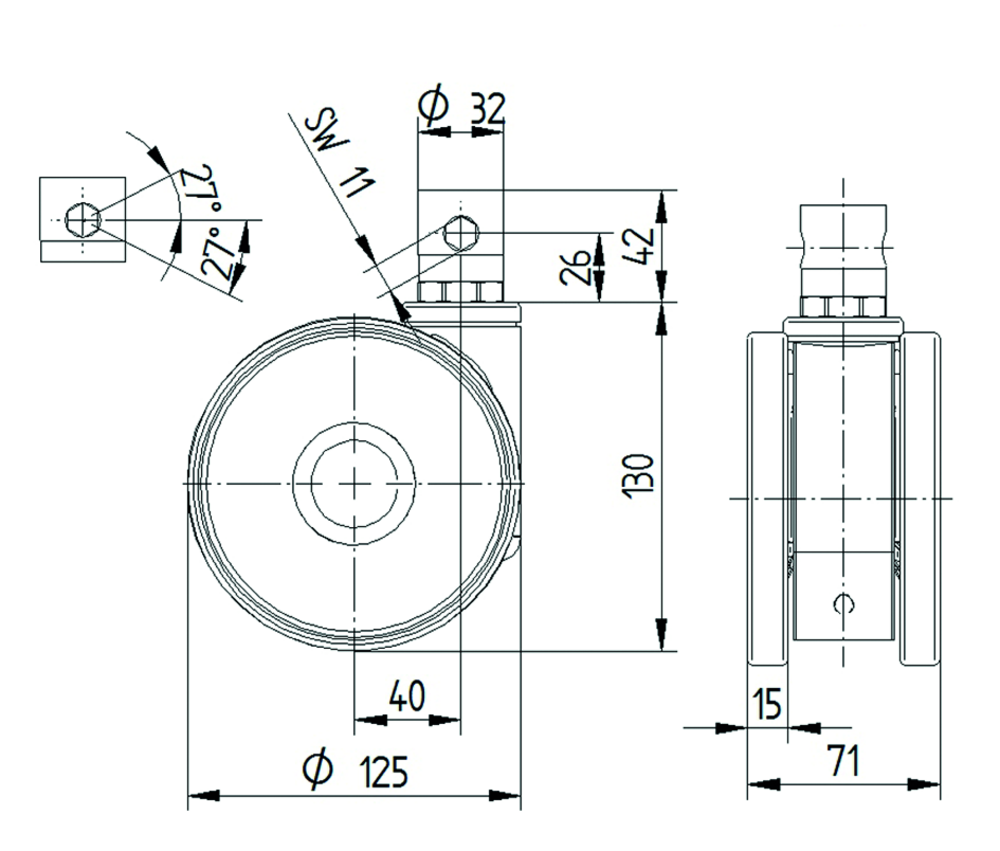 Linea clinic带中控全锁或方向锁的万向脚轮采用带凸轮孔的闸杆,用于异型杆,短版本设计,可清洗病床必须由医院病床制造商在试衣区密封的。脚轮外壳采用聚酯胺材料制造,配备精密滚珠轴承的旋转机构确保平稳运行。车轮轮体同样采用聚酯胺材料,胎面为注塑聚氨酯,轴承为不锈钢精密滚珠轴承,车轮直径为125毫米。脚轮总高度为130毫米。动态载荷能力在3公里/小时速度下为150公斤,在4公里/小时速度下为150公斤,静态载荷能力达300公斤。该产品广泛应用于麻醉车、C形臂CT扫描仪核磁共振X光设备、带轮计算机、透析车、医院病床、医院、药品车、养老院和护理院、护理车、担架、超声设备以及呼吸机等医疗设备。