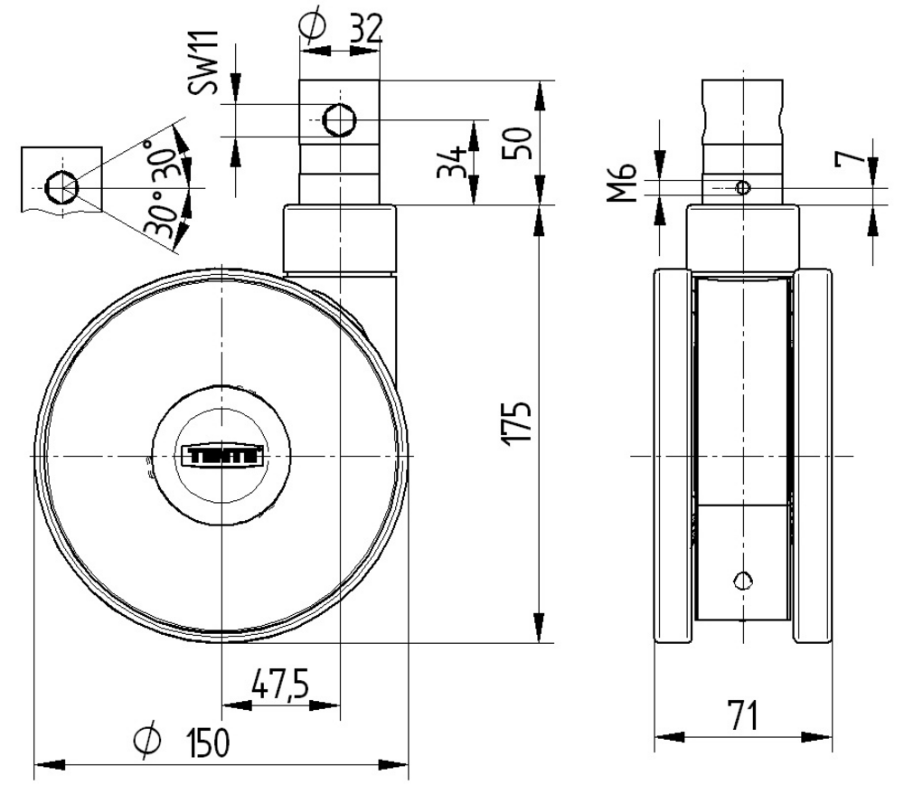 Linea clinic带中控全锁或方向锁的万向脚轮采用带凸轮孔的闸杆,用于异型杆,短版本设计,可清洗病床必须由医院病床制造商在试衣区密封的。脚轮外壳采用聚酯胺材料制造,配备精密滚珠轴承的旋转机构确保平稳转动。车轮轮体同样采用聚酯胺材料,胎面为注塑聚氨酯材质,轴承采用不锈钢精密滚珠轴承设计。车轮直径为150毫米,脚轮总高度为175毫米。动载荷能力在3公里/小时和4公里/小时速度下均为150公斤,静载荷能力达300公斤。该脚轮广泛应用于麻醉车、C形臂CT扫描仪核磁共振X光设备、带轮计算机、透析车、医院病床、医院设施、药品车、养老院和护理院设备、护理车、担架、超声设备以及呼吸机等医疗设备。