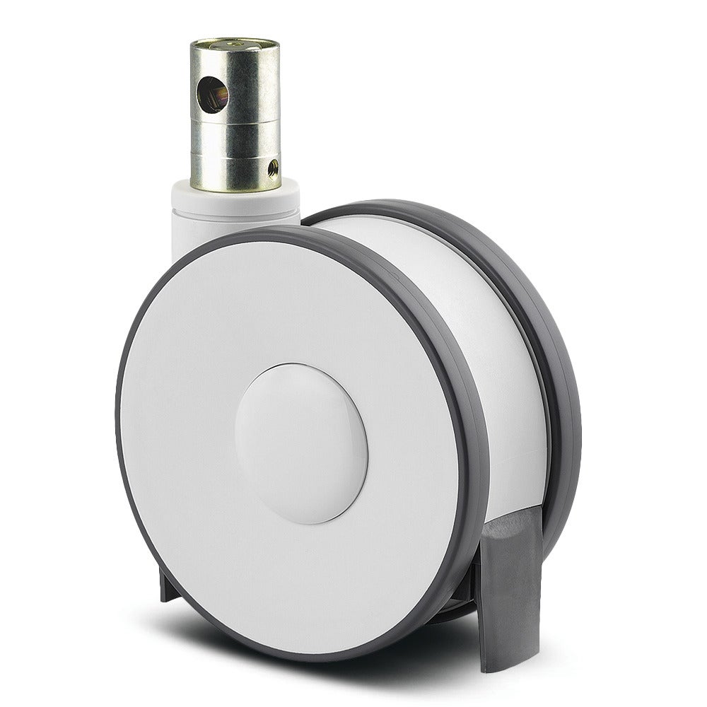 Linea clinic带中控全锁或方向锁的万向脚轮采用带凸轮孔的闸杆,用于异型杆,短版本的安装方式。支架由聚酯胺材料制成,配备精密滚珠轴承的旋转机构,支架带有由聚乙烯制成的集成电缆捕手。脚轮轮体采用聚酯胺材料,胎面为注塑聚氨酯材质,轮毂装配精密滚珠轴承,轮径为125毫米。产品总高度为130毫米。动载荷能力在3公里/小时速度下为150公斤,在4公里/小时速度下为150公斤,静载荷能力达450公斤。该脚轮广泛应用于麻醉车、C形臂CT扫描仪核磁共振X光设备、带轮计算机、透析车、医院病床、医院设施、药品车、养老院和护理院设备、护理车、担架、超声设备以及呼吸机等医疗器械领域。