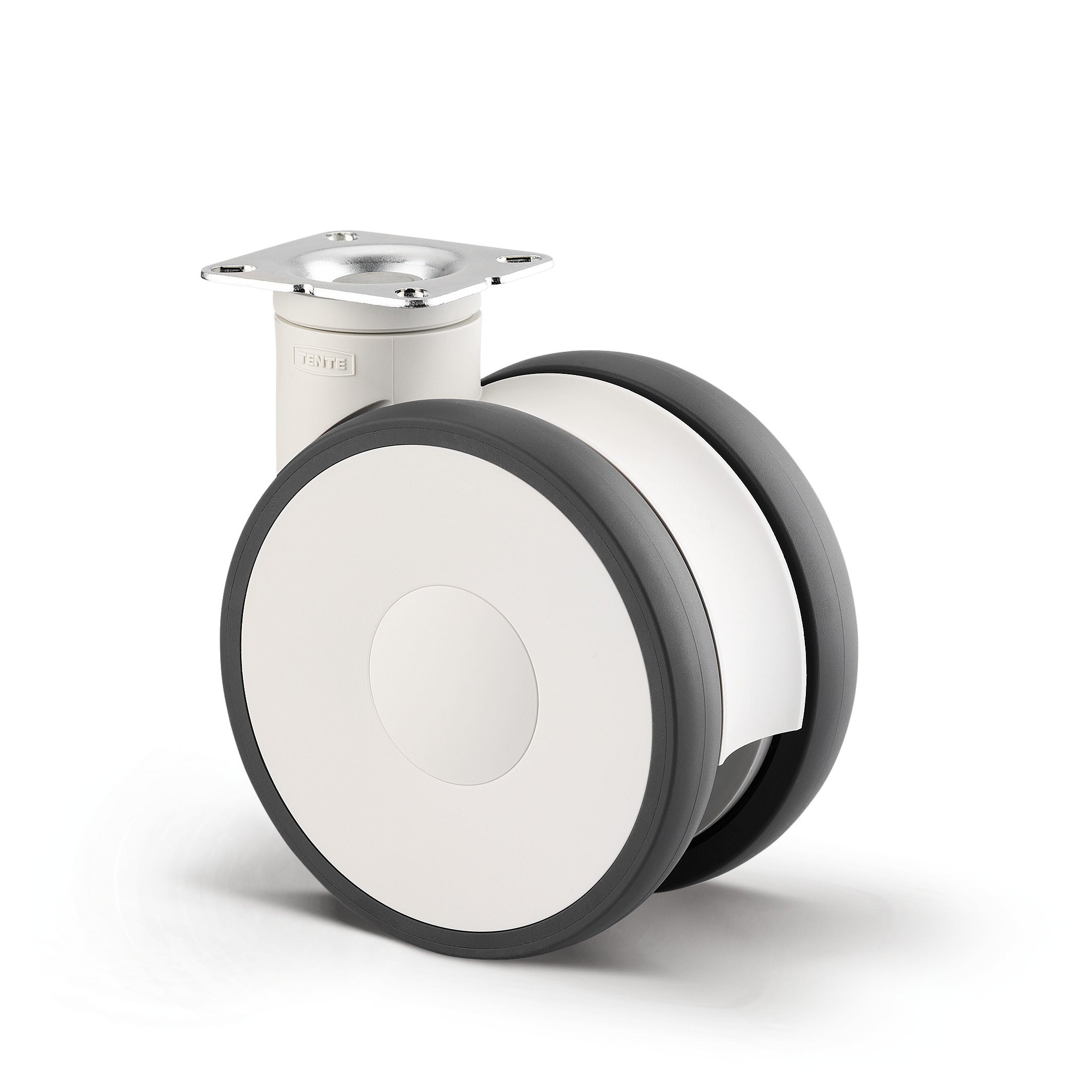 Linea万向脚轮采用矩形板安装方式,为医疗和专业应用提供可靠的移动解决方案。脚轮外壳采用聚酯胺材料制造,配备精密滚珠轴承的旋转机构,确保平稳灵活的360度转向性能。车轮本体同样采用聚酯胺材料,胎面为注塑聚氨酯材质,具有优异的耐磨性和静音特性,轮毂内置精密滚珠轴承保证长期稳定运行。车轮直径为150毫米,脚轮总高度为170毫米,结构紧凑适合各种设备安装。该脚轮动载荷能力为110公斤(运行速度3公里/小时),静载荷能力达220公斤,能够满足重型设备的承载需求。广泛应用于麻醉车、CT扫描仪、核磁共振、X光设备、护理床、餐饮手推车、透析车、医院药品车、康复设备、养老院护理车、办公家具、病人升降机、躺椅、手术机器人、治疗椅、超声设备、呼吸机及专业清洁车等医疗和商业领域。