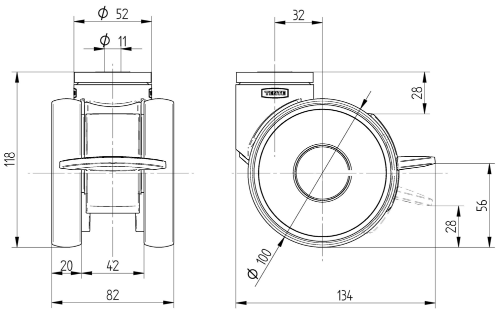 Linea带方向锁的旋转脚轮采用螺栓孔安装方式,确保稳固连接。脚轮外壳采用聚酯胺材料制造,配备精密滚珠轴承的旋转机构,提供顺畅的360度转向性能。车轮轮体由导电聚酯胺材料构成,轮面采用注塑导电聚氨酯材料,具备优异的耐磨性和导电特性,轮子内置精密滚珠轴承确保运行平稳。车轮直径为100毫米,脚轮总高度为118毫米,结构紧凑适用于各种设备。该脚轮动载荷能力为120公斤(运行速度3公里/小时),静载荷能力达240公斤,能够满足重载应用需求。产品广泛应用于麻醉车、C型臂CT扫描仪核磁共振X光设备、护理床、餐饮手推车、带轮计算机、透析车、医院药品车、康复设备、养老院护理车、办公家具、病人升降机、躺椅、手术机器人、治疗椅、超声设备、呼吸机及专业清洁车等医疗和商用设备。