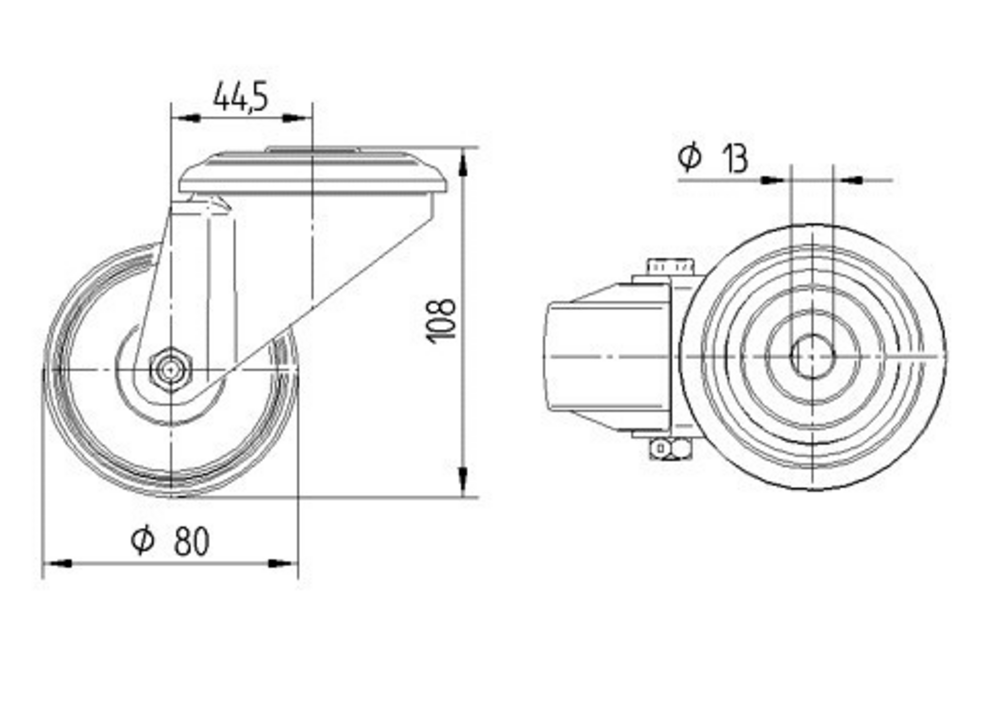 Alpha stainless万向脚轮采用螺栓孔安装方式,配备不锈钢重型外壳,转向轴承采用两个钢珠滚道设计,确保转向灵活性和耐用性。轮子主体材料为聚酯胺,胎面材料与轮子体相同,轴承为滑动轴承结构。轮子直径为80毫米,脚轮总高度为108毫米。动态载荷能力为150公斤(行驶速度4公里/小时),静态载荷能力为300公斤。该产品广泛应用于餐饮手推车和送餐系统、集装箱建造、电子系统洁净室技术、消防技术防火保护、机械制造以及运输设备等多个领域,其不锈钢材质和重型设计特别适合对卫生要求严格和承载能力要求较高的工业环境使用。