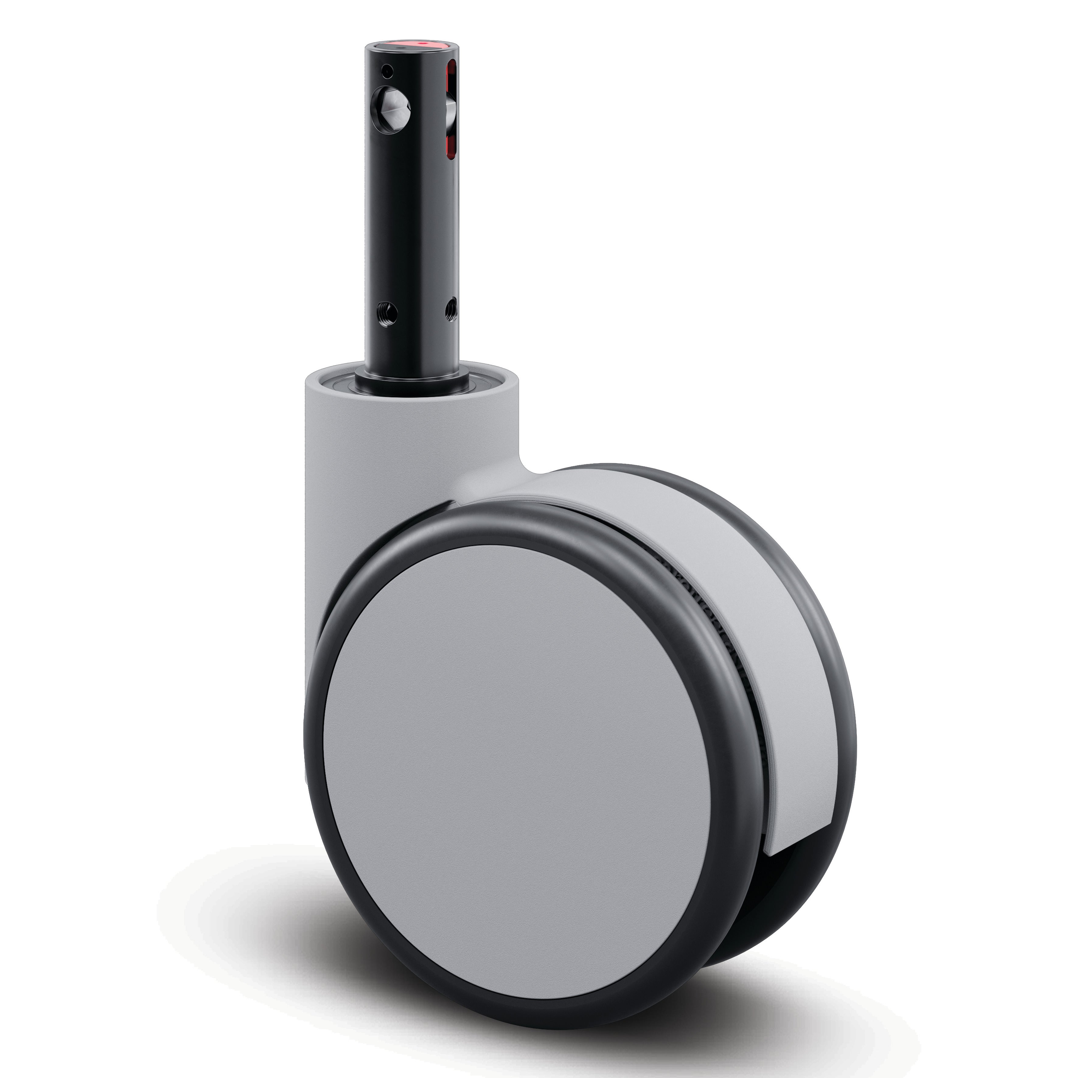 Forma带中央锁定的旋转脚轮(方向锁定、自由、轮子锁)采用带凸轮孔的闸杆,用于异型杆的安装配件。脚轮外壳由锌压铸/铝材料制成,配备精密滚珠轴承的旋转机构,确保平稳转动和长久耐用性。轮子轮体采用聚酯胺材料制造,表面覆盖弹性轮胎,无痕,硫化处理,轮子内部装有精密滚珠轴承,轮径为150毫米。脚轮总高度为177毫米,动态承载能力达135公斤(测试速度3公里/小时)。该产品广泛应用于医疗设备领域,包括麻醉车、C形臂CT扫描仪核磁共振X光设备、药品车、护理车以及超声设备等专业医疗器械的移动支撑系统。
