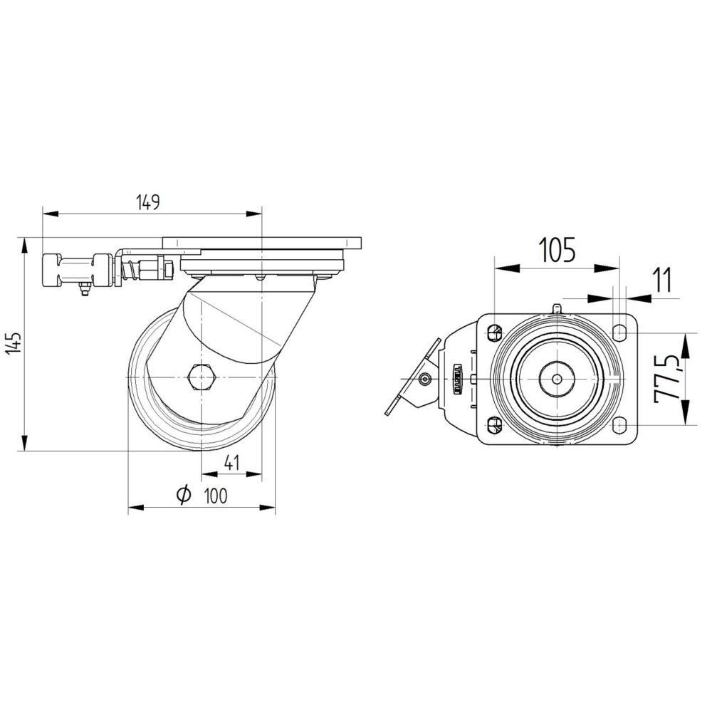 Kappa带方向锁的旋转脚轮采用矩形板安装方式,外壳采用铸铁或锻铁重型材质制造,配备两个球座圈,加强的型或不锈钢型旋转轴承系统,确保卓越的转向性能和耐久性。脚轮轮体采用铸铁材质,胎面为聚氨酯,铸造的高品质材料,内置精密滚珠轴承,轮径为100毫米,整体高度为145毫米。该脚轮静态承载能力达900公斤,动态承载能力在4公里/小时速度下为540公斤,在6公里/小时速度下为450公斤。广泛应用于航空航天工业,机场设备、AMR系统、汽车OEM、陶瓷和玻璃制造商、生产和平台手推车以及重型AGV系统等工业领域,为各种重载移动设备提供可靠的移动解决方案。