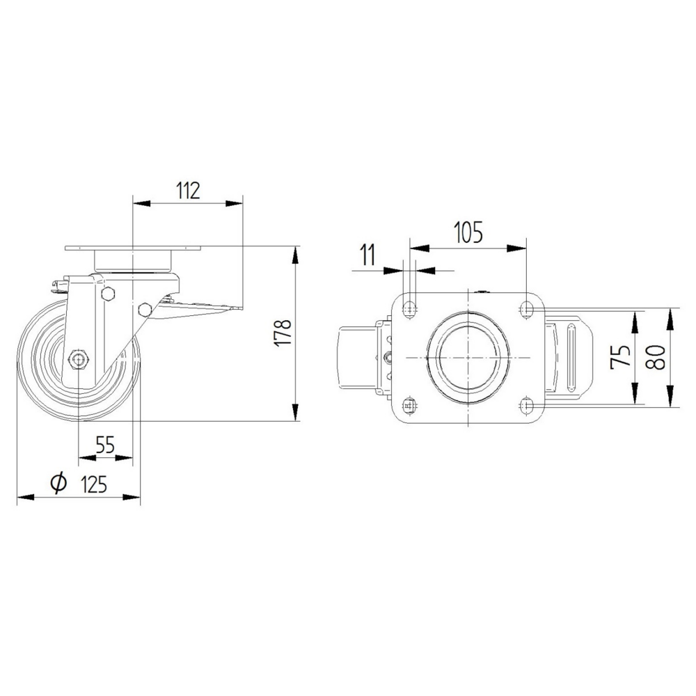 固定脚轮 125 mm